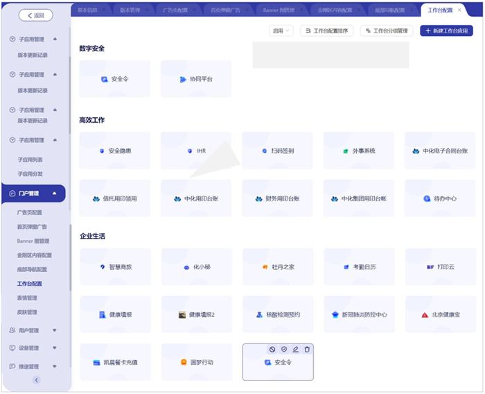 ● 配置各个应用入口使用权限