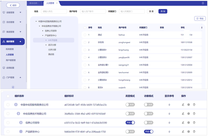 ● 可设置某个组织只能看到本节点下的组织看不到其它组织